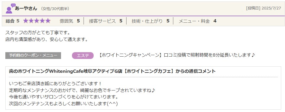 - 他のお店みたいな激安クーポンは無いので値段だけ見る方には合わないかも